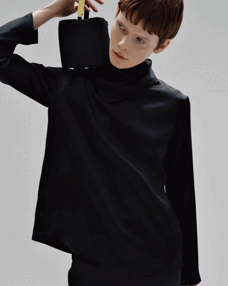 Relaxed-fitted turtleneck blouse cut from fluid satin with padded shoulders.100% viscose